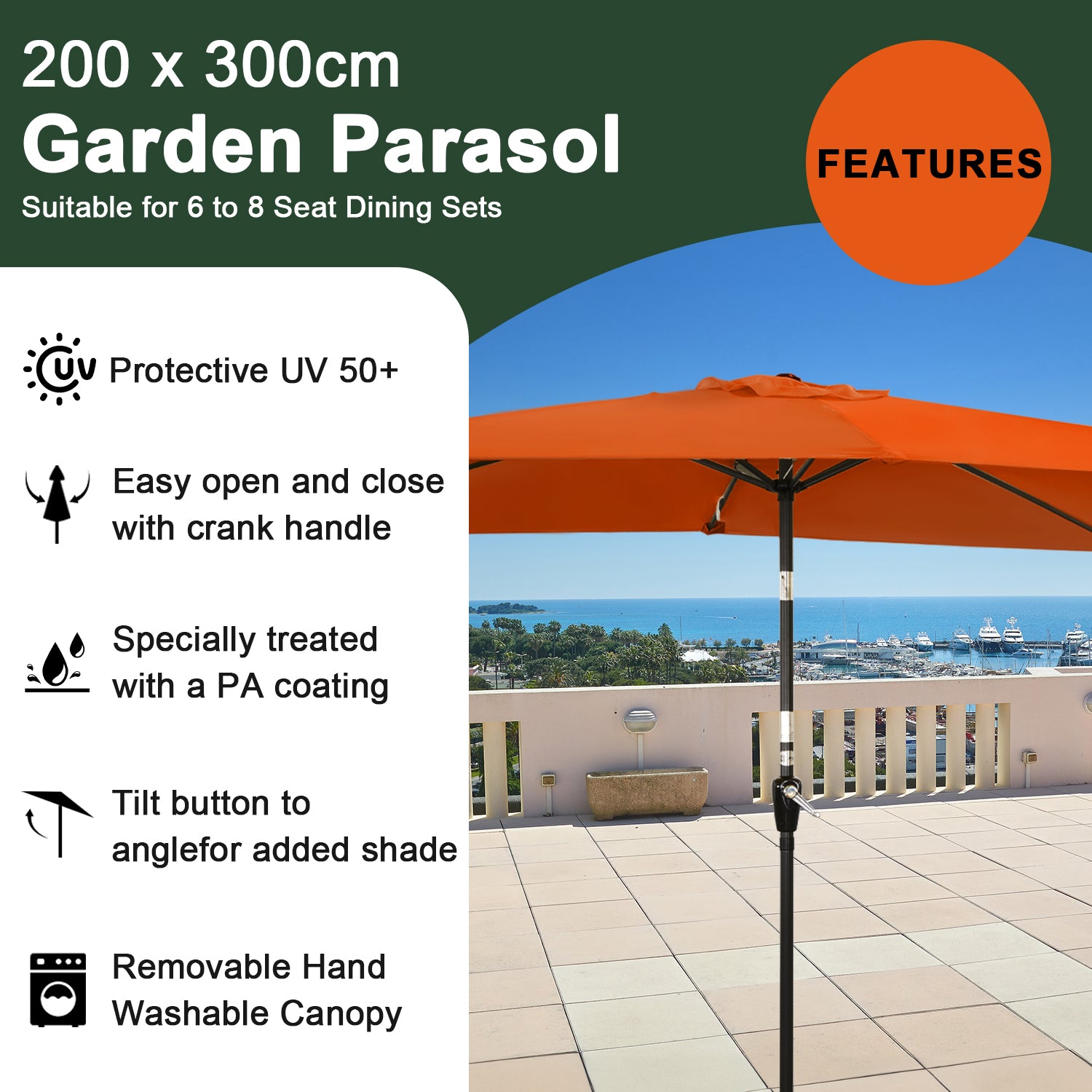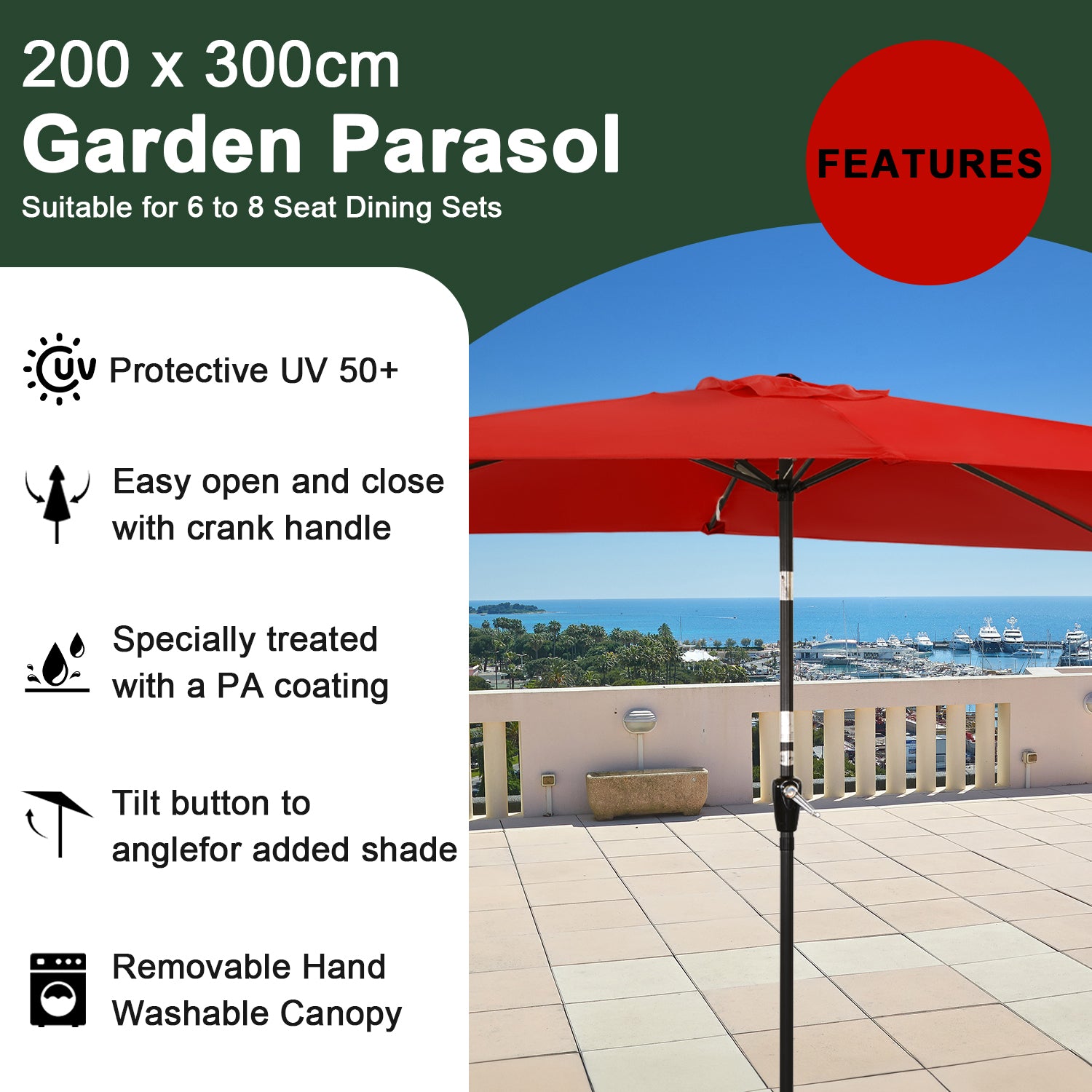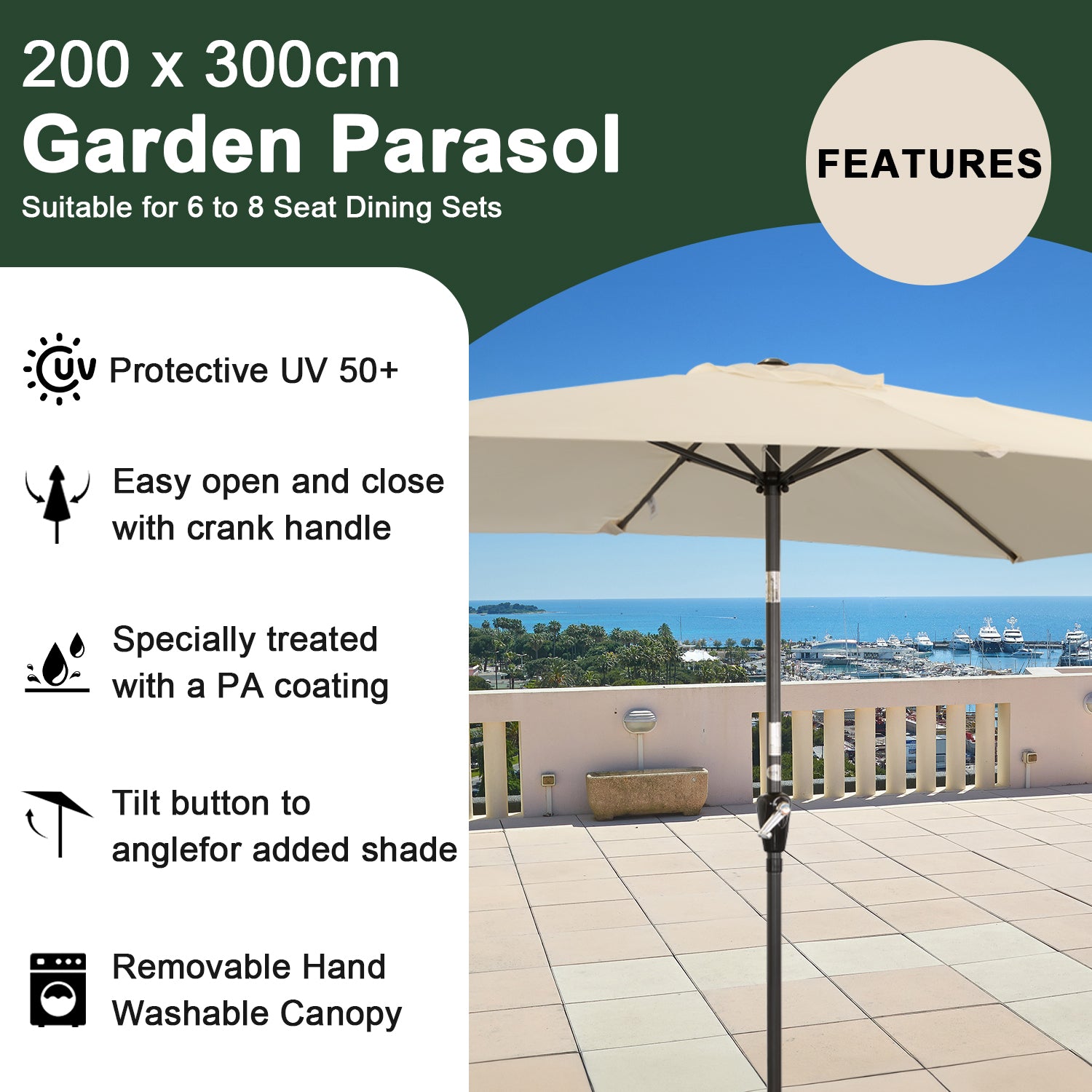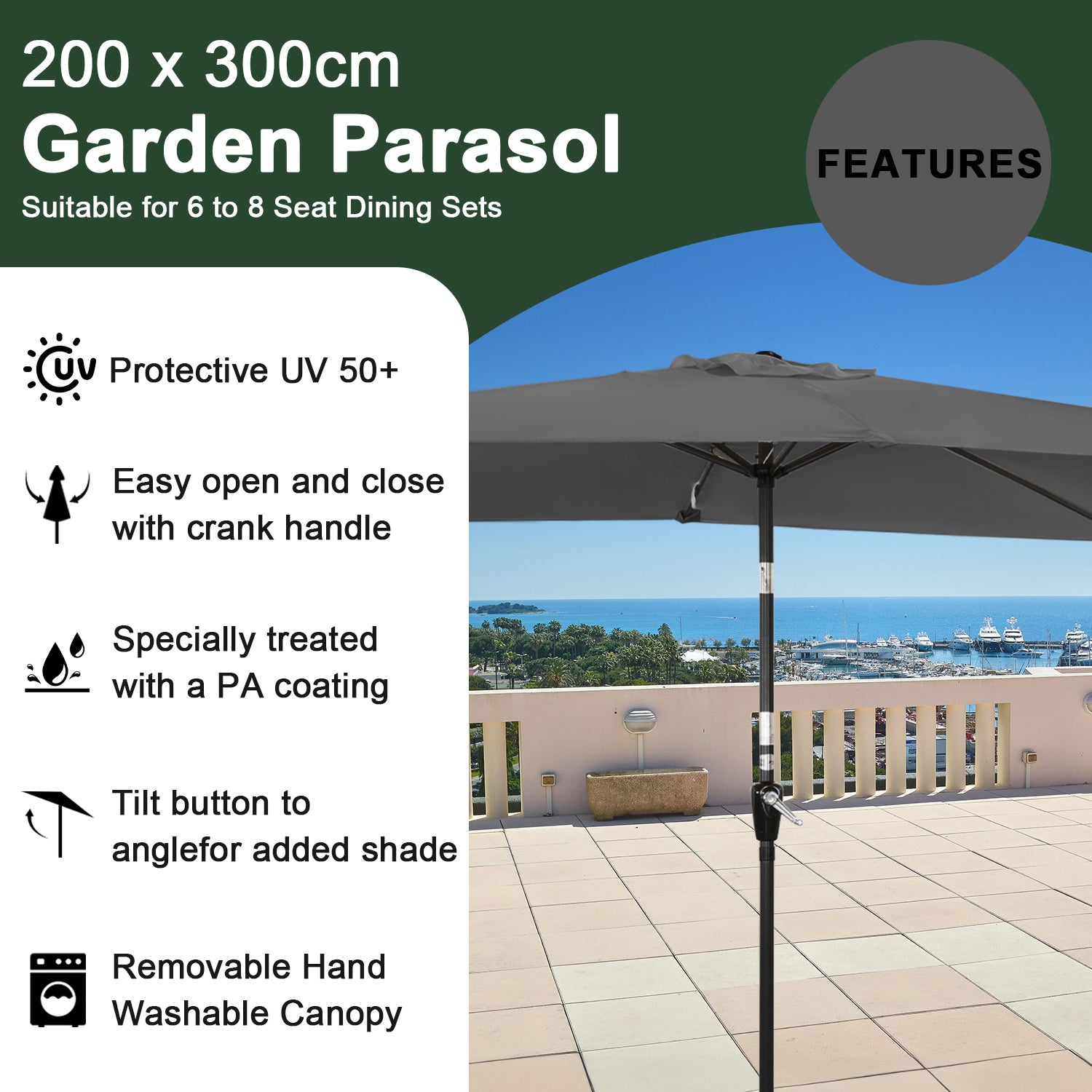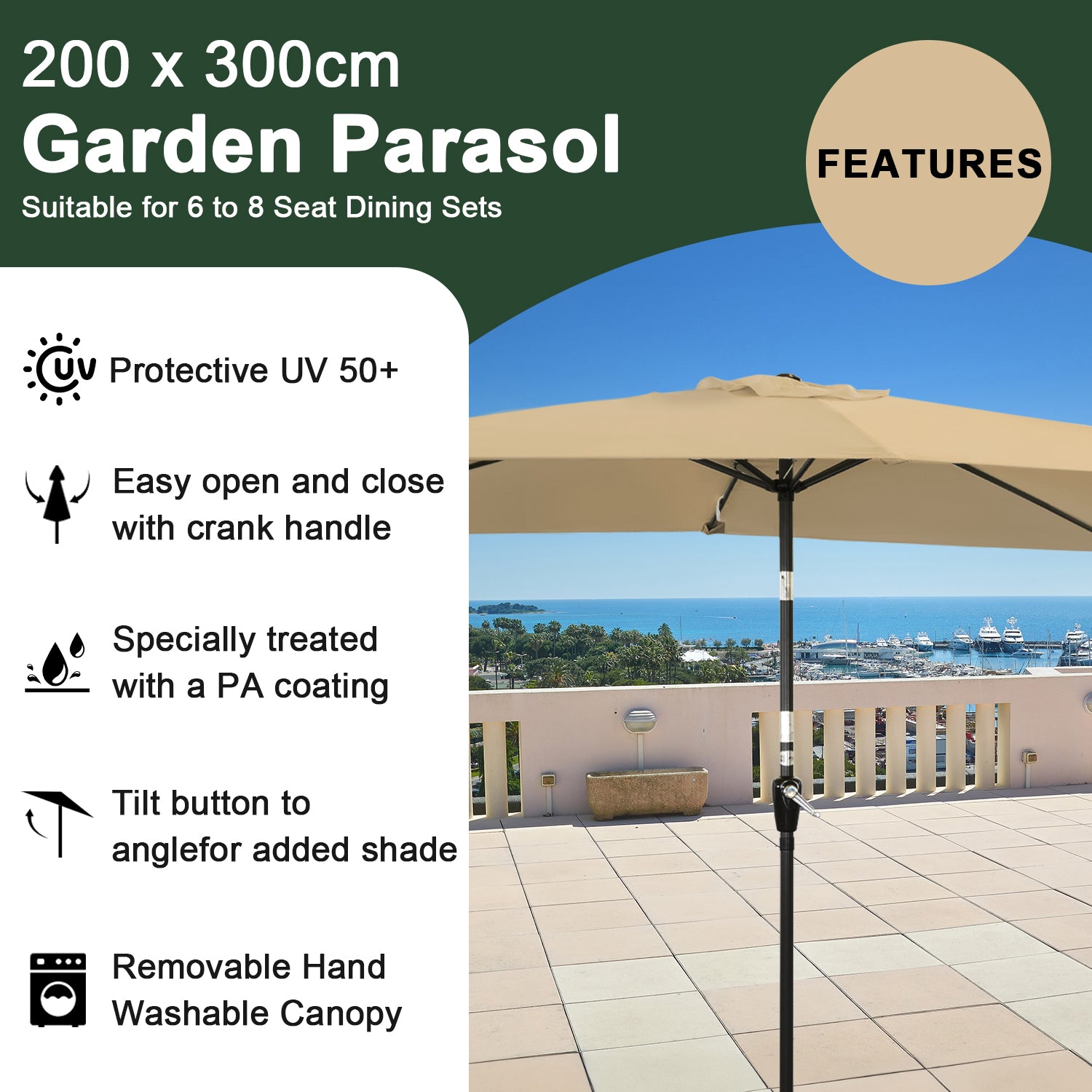 300x200cm Sonnenschirm Rechteck Sonneschirm aus aus Aluminium, Stahl und Polyester
