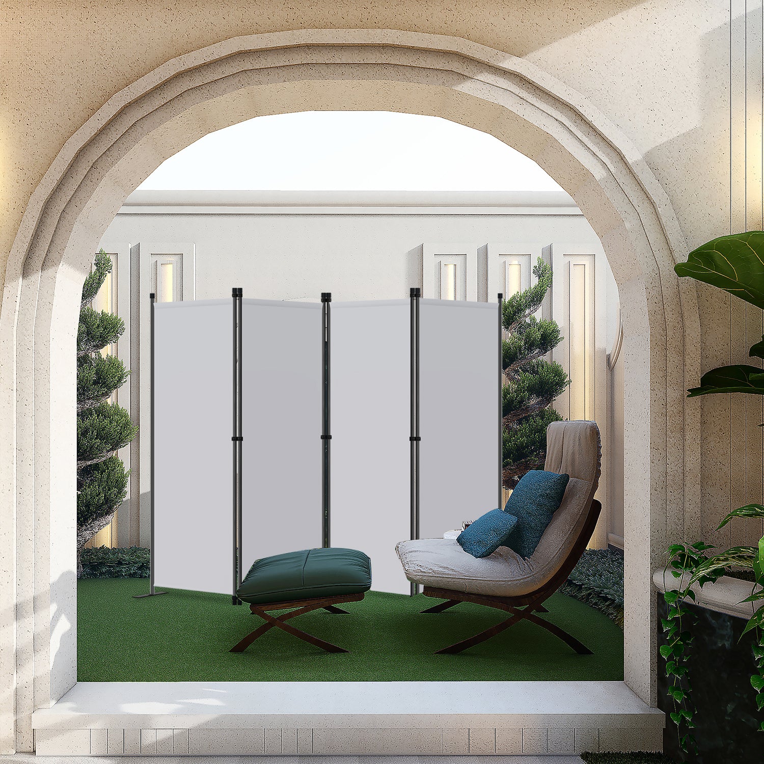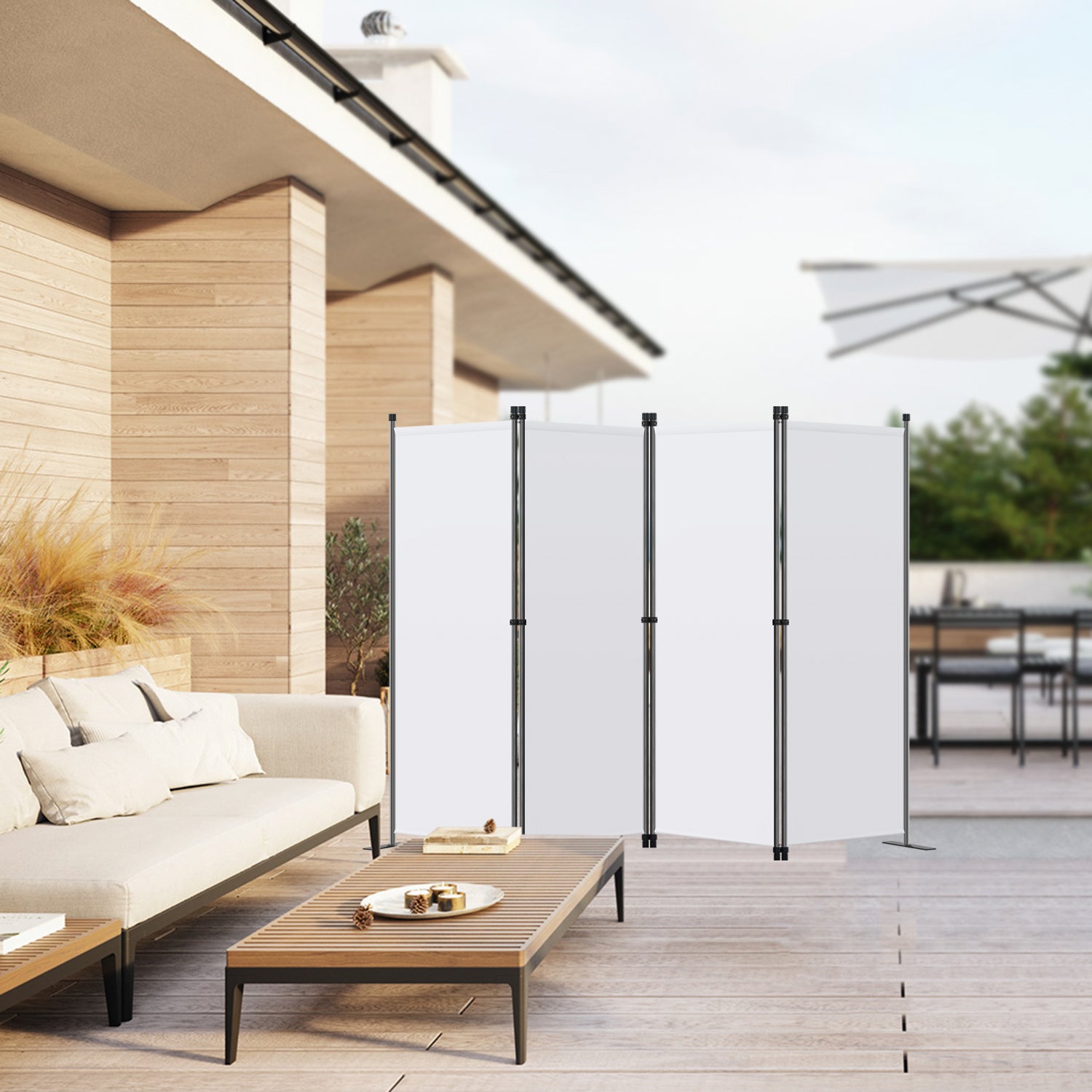 Matériel: Acier et polyester Poids: 6.8Kg Paravent 4pcs. Longueur : 224cm, haut :165cm.