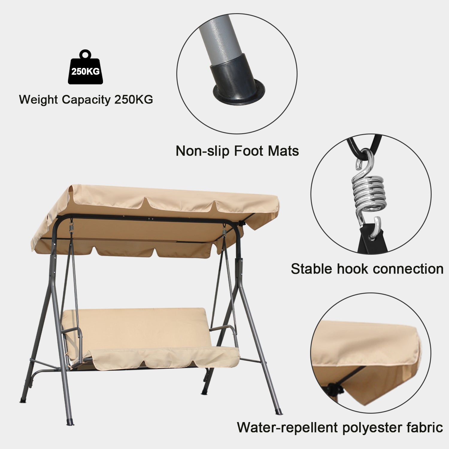 Hollywoodschaukel Gartenschaukel 3 Sitzer mit Sonnenschutz 173x110x151cm - beige ist auf Lager und wird versandt, sobald es wieder verfügbar ist