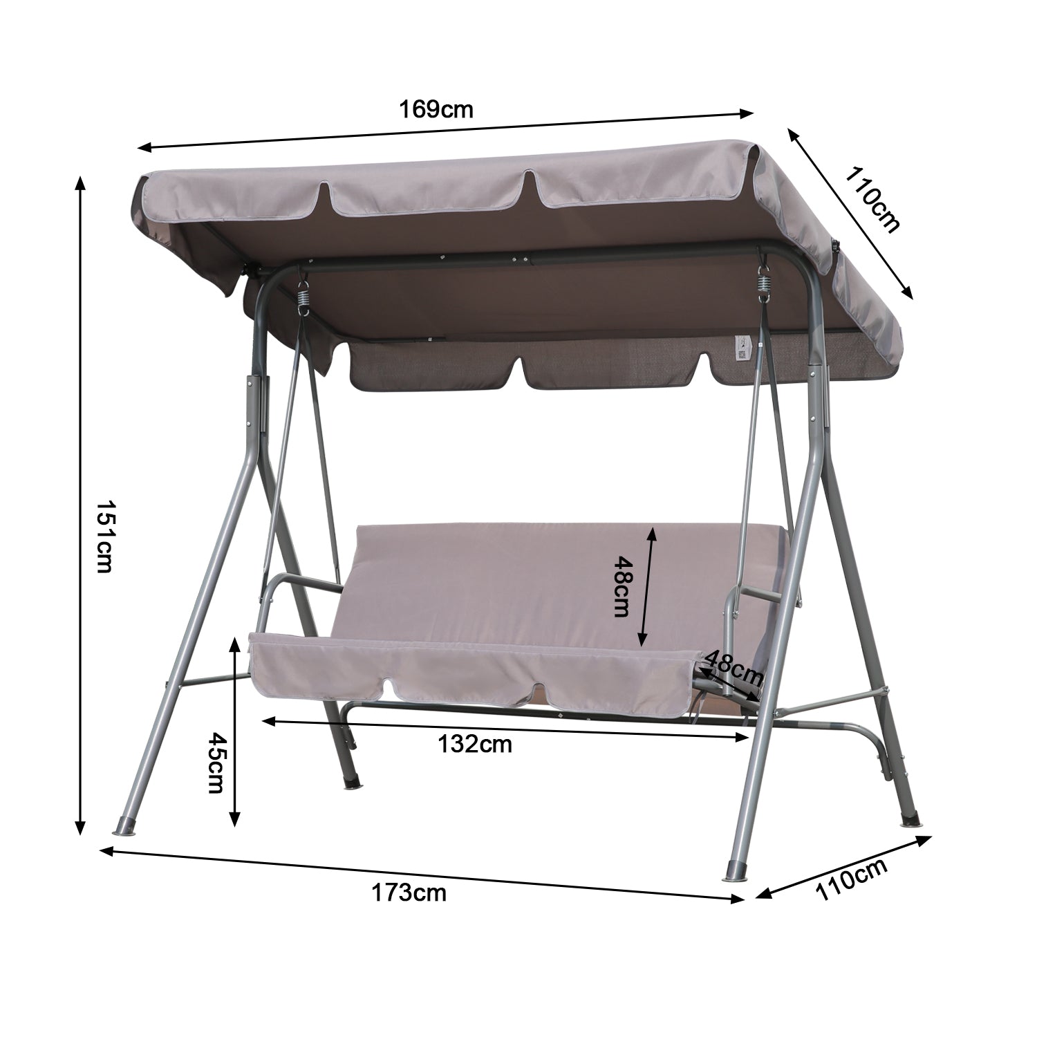 Material: Stahl und Polyester Gewicht: 19,5Kg Produktmaße: L: 169 B: 110 H: 151cm Belastbarkeit: bis max. 220Kg.